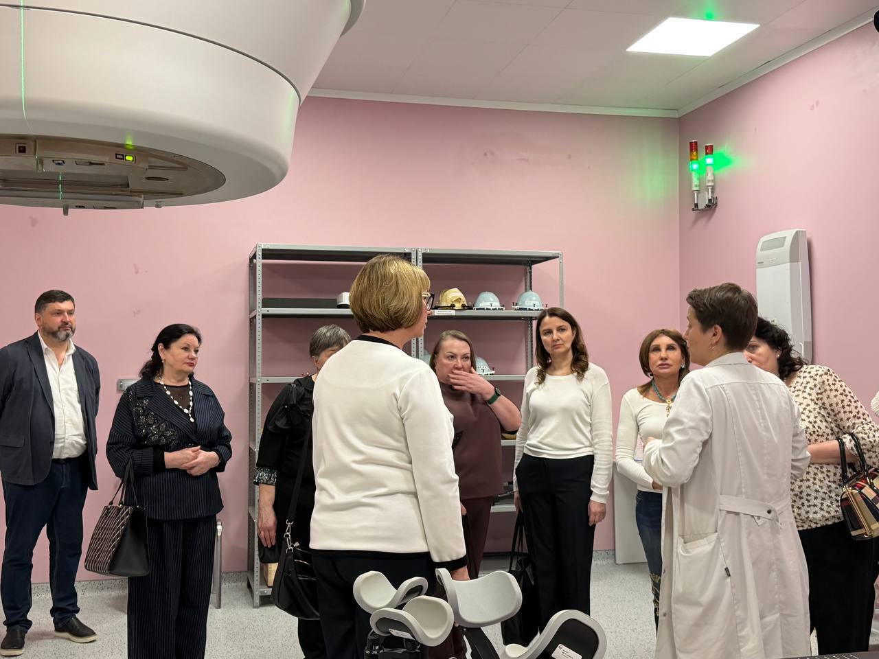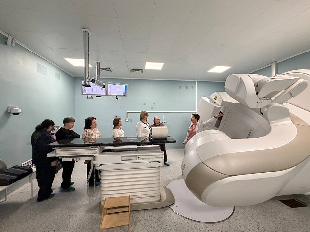 Специалисты отделения наглядно показали принципы обеспечения безопасности и эффективности лечения. Субмиллиметровая точность достигается за счёт визуализации перед сеансом лучевой терапии, использования специальных систем позиционирования и фиксирующих устройств, а также за счет использования методики контроля за дыханием и движением органов пациента в реальном времени. Такой подход позволяет подводить к опухоли максимальную дозу облучения, одновременно защищая окружающие здоровые ткани.