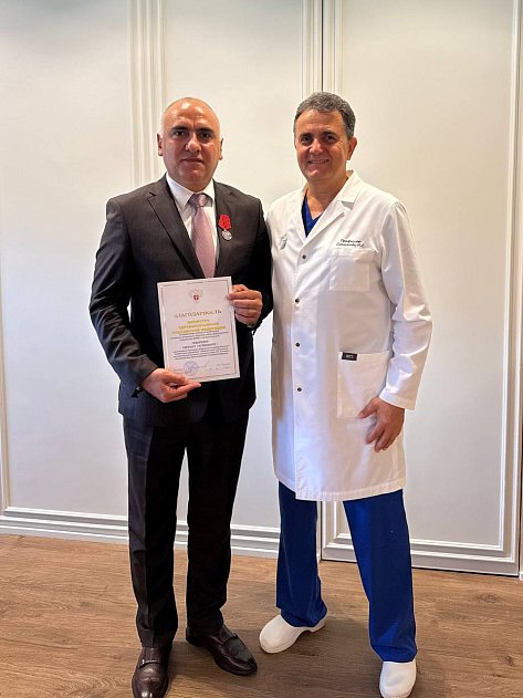 Директор НМИЦ онкологии им. Н.Н. Блохина Иван Стилиди поздравил Тиграна Геворкяна с наградами, отметив его профессионализм и значимый вклад в реализацию федеральных проектов Центром.