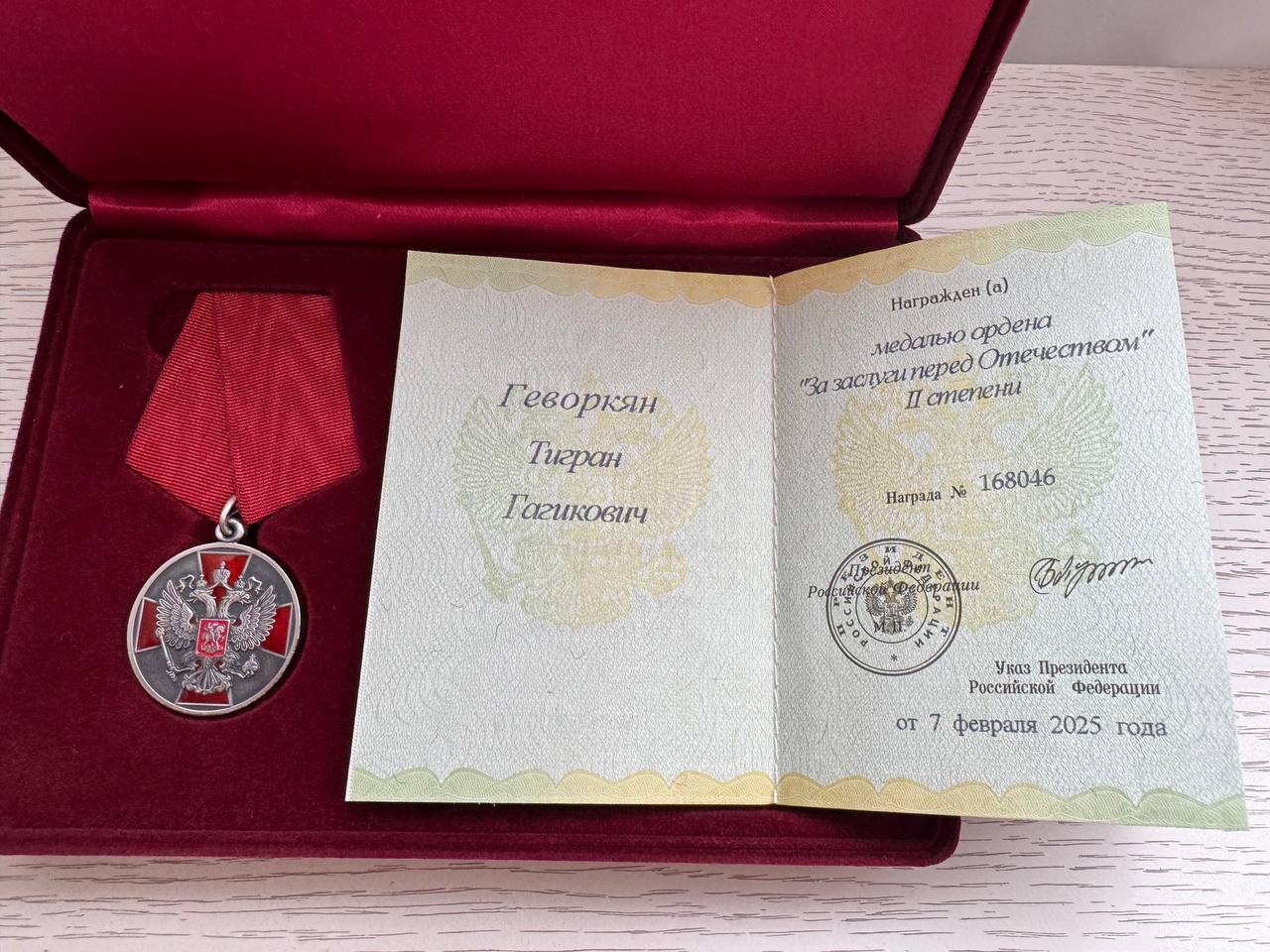 Государственную награду получил Тигран Геворкян