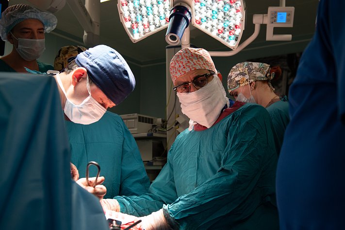 Операция была крайне сложной: опухоль располагалась в неудобном месте, тесно прилегала к печени, нижней полой вене, почке и диафрагме. Сначала хирургическая команда полностью выделила опухоль. Вторым этапом была удалена тромботическая масса из нижней полой вены: врачи изолировали кровоток от нижних конечностей, почек и печени, временно перекрыли часть правого предсердия, чтобы предотвратить миграцию тромба в лёгочную артерию. Тромб был «флотирующим» — его головка свободно двигалась в кровотоке, и любое неправильное движение могло вызвать серьёзные осложнения.
