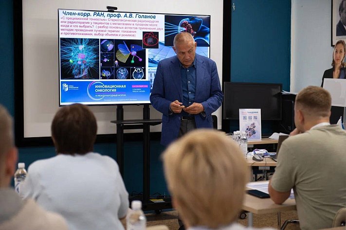 Мы обсуждали сложные случаи: глиальные опухоли, менингиомы. Медицинские физики сделали акцент на стереотаксической радиохирургии — это актуально и активно внедряется в регионах. Мы старались выработать для коллег алгоритмы, дать понимание, какие локализации подходят для стереотаксиса, чего не стоит бояться, а к чему нужно относиться осторожно. Ведь для нас, помимо выживаемости пациента, критически важен протокол безопасности лечения.