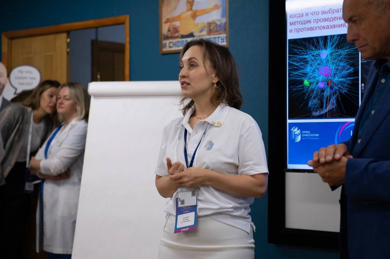 Атмосфера была невероятно тёплая. Приехало много друзей, с которыми мы сотрудничаем уже много лет. На практике мы оконтурировали глиальные опухоли, разбирали стереотаксическую радиохирургию уже в системе планирования. Для нас это была сложная локализация и настоящий вызов. И, на мой взгляд, всё получилось. Атмосфера была рабочая и при этом живая. Если бы я сама пришла как участник, а не модератор, я бы получила огромное удовольствие. Спасибо всем, кто участвовал