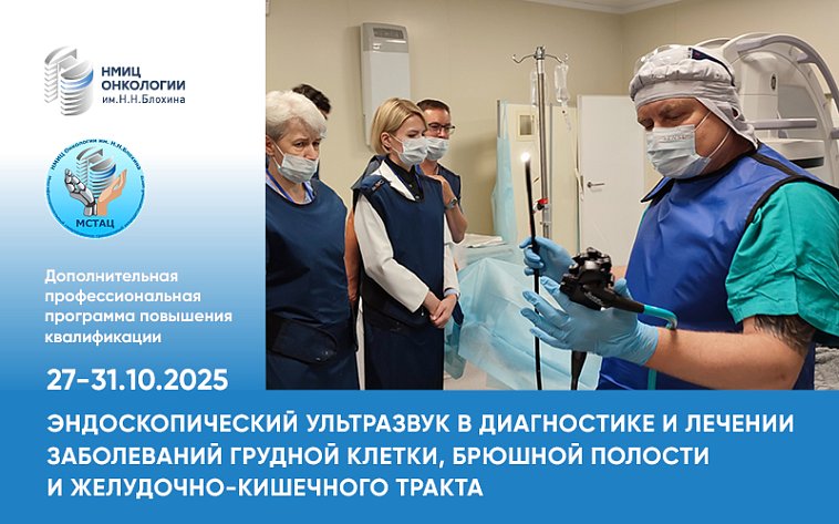 Департамент профессионального образования НМИЦ онкологии им. Н.Н. Блохина приглашает практикующих онкологов пройти курс «Эндоскопический ультразвук (эндосонография, EUS) в диагностике и лечении заболеваний грудной клетки, брюшной полости и желудочно-кишечного тракта» на базе многофункционального симуляционно-тренингового аккредитационного центра.