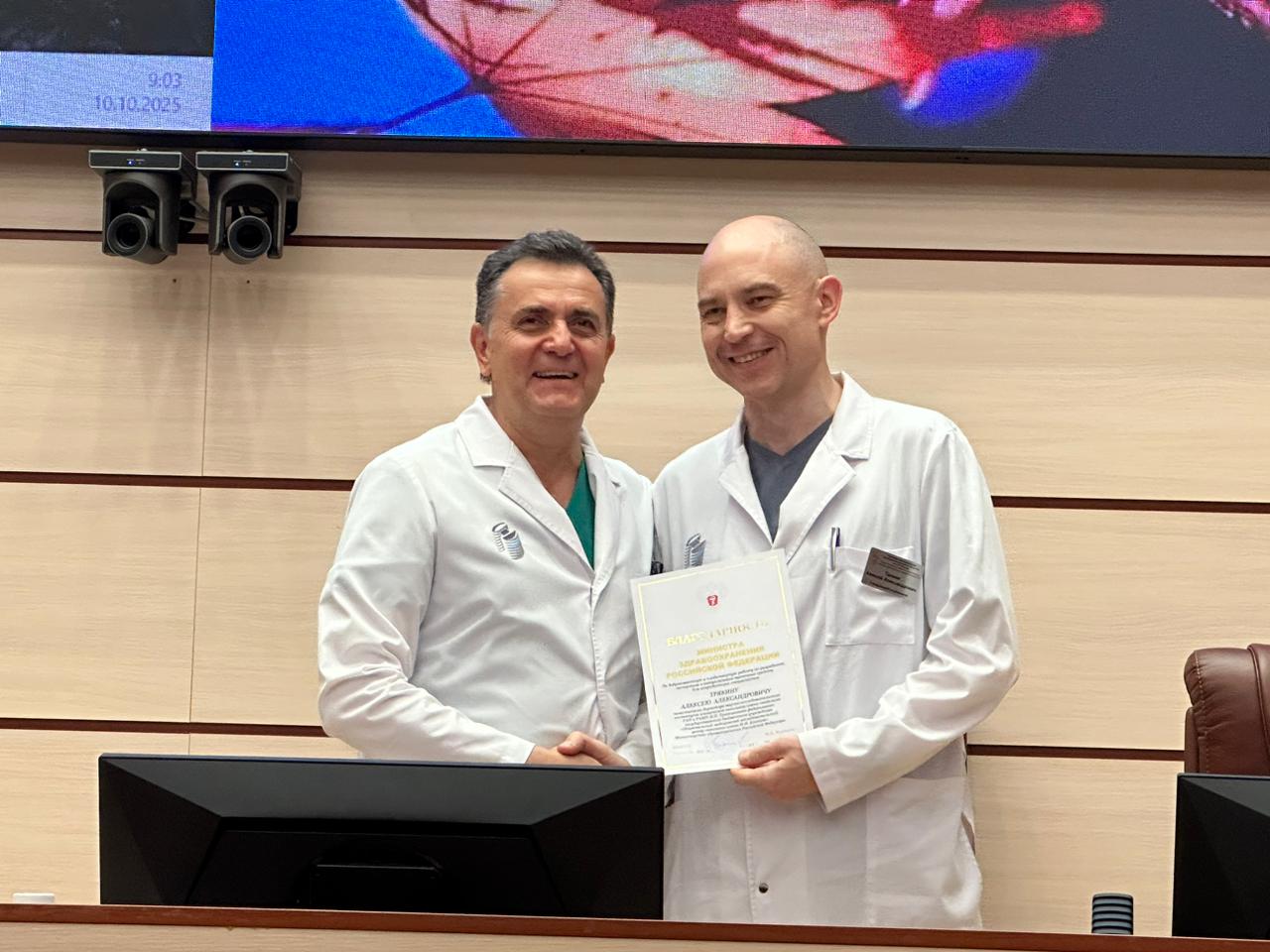 Директор НМИЦ онкологии им. Н.Н. Блохина, д.м.н., профессор, академик РАН Иван Сократович Стилиди вручил сотрудникам Центра благодарности министра здравоохранения Российской Федерации за добросовестную и плодотворную работу по разработке, экспертизе и актуализации оценочных средств для аккредитации специалистов.