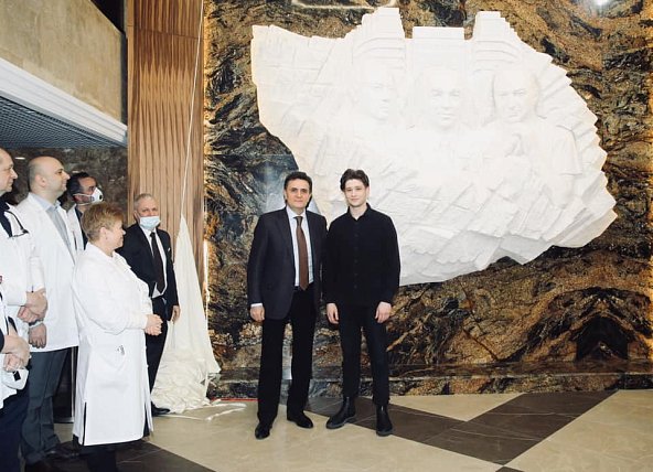 Отдельное внимание уделили центральной композиции – Иван Стилиди не только разработал её концепцию и периодически приезжал в мастерскую посмотреть, как идет работа, он в буквальном смысле приложил к этой скульптурной композиции руку. «Иван Сократович с удовольствием участвовал в процессе создания горельефа, своими руками лепил, причём с глубоким пониманием того, что он делает. Руки хирурга такого уровня талантливы не только в операционной», – делится Степан Никулин. По словам скульптора, особое внимание директор Центра уделил изображению взгляда и рук Михаила Ивановича Давыдова, своего учителя и наставника, великого хирурга.