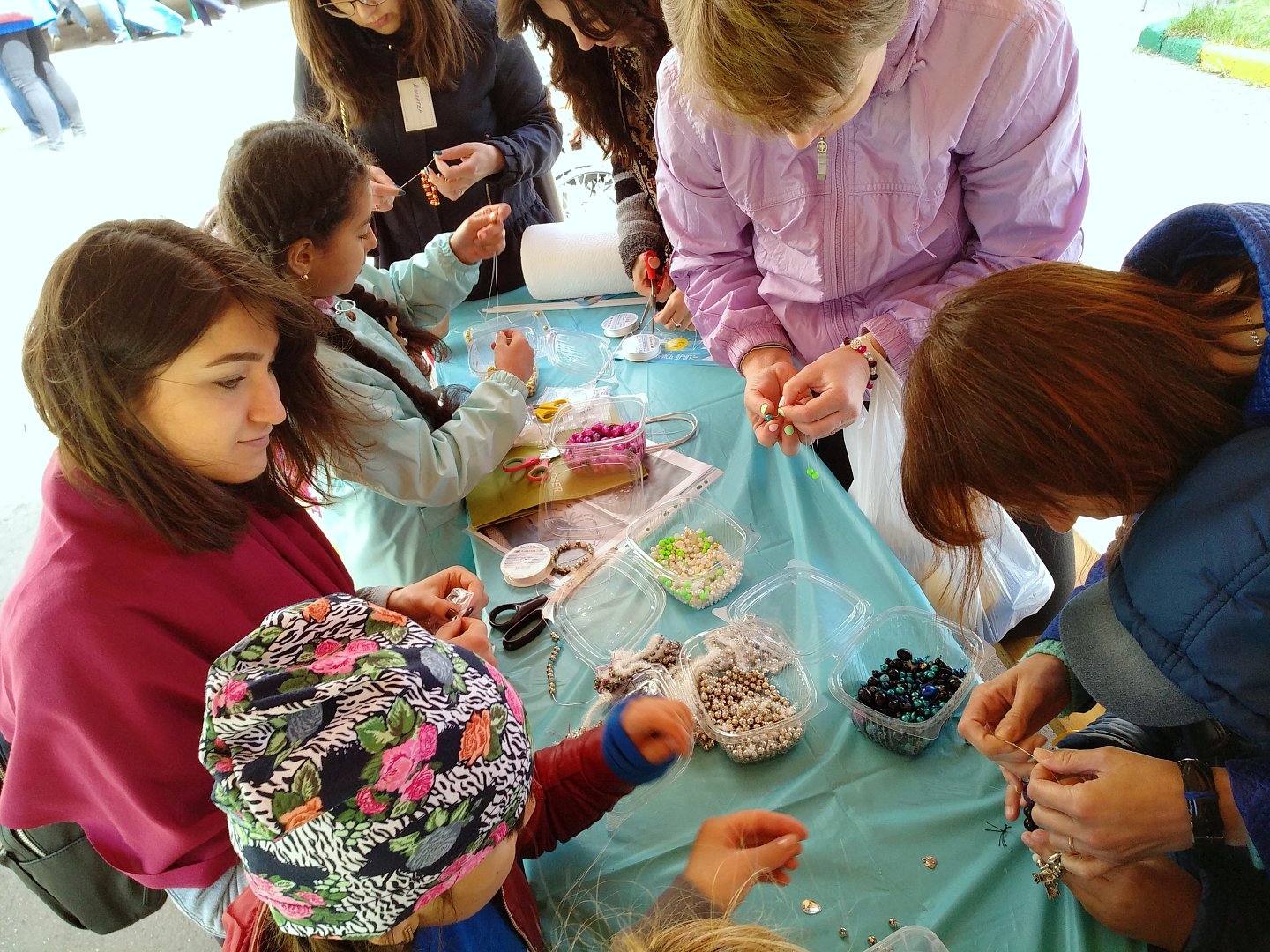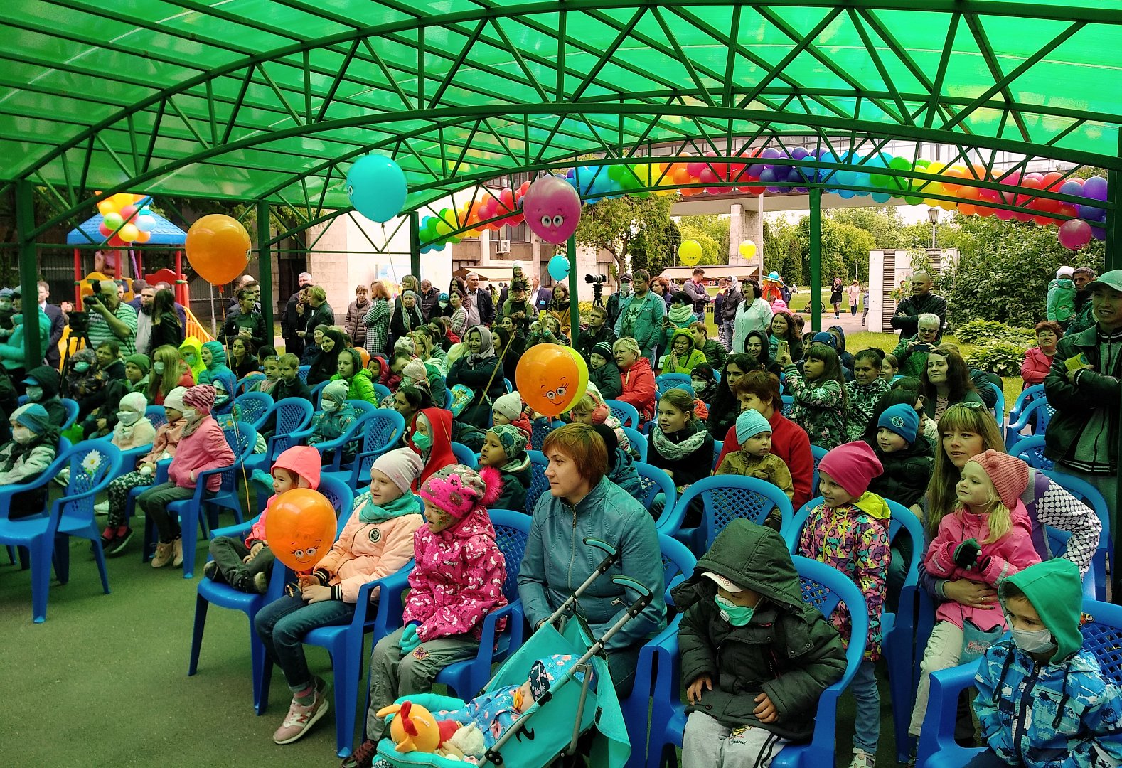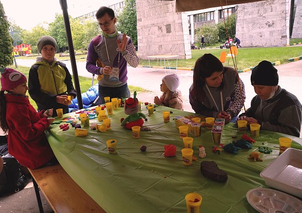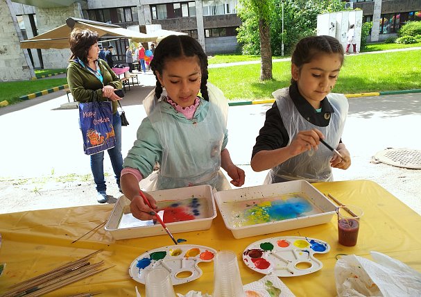 Гирляндами разноцветных шаров украсилась в этот день детская площадка в НИИ детской онкологии и гематологии. Её заполнили родители с детьми, проходящими здесь лечение. Вокруг – столько всего интересного! Мастер-классы рисования на воде в технике эбру, по выдуванию огромных мыльных пузырей, по изготовлению бижутерии - цветные бусы останутся в подарок. На пару часов забыть о процедурах, надеть 3D очки и увидеть виртуальную реальность – разве это не здорово? Мастера-визажисты разрисовывали ребячьи лица, превращая девчонок и мальчишек в сказочных персонажей.