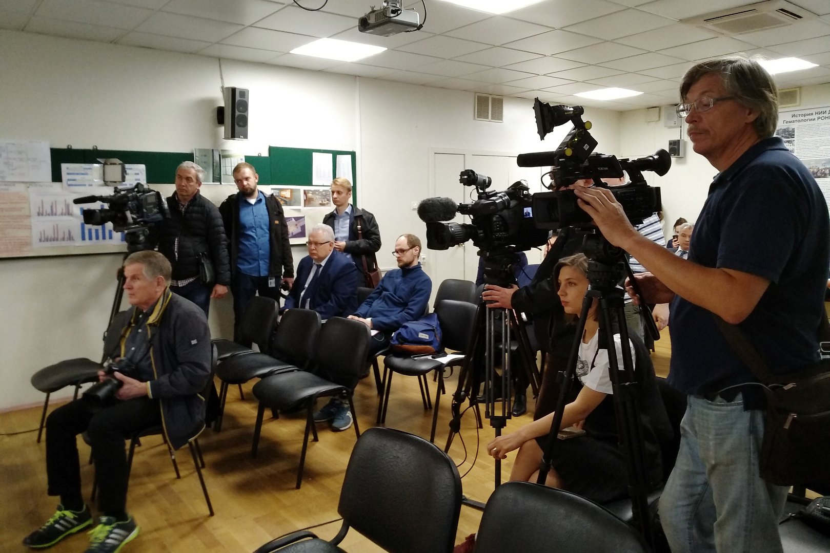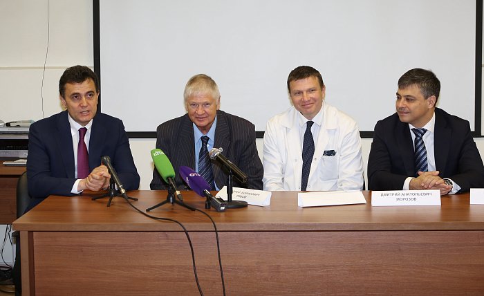 В это время в конференц-зале НИИ прошёл брифинг для журналистов. В нём приняли участие и.о.директора НМИЦ онкологии им.Н.Н.Блохина, академик РАН Иван Стилиди, председатель комитета Госдумы РФ по охране здоровья Дмитрий Морозов, директор НИИ детской онкологии и гематологии, д.м.н. Андрей Рябов, заместитель директора НИИ детской онкологии и гематологии по научной работе, академик РАН Владимир Поляков, заместитель директора НИИ по перспективному развитию, к.м.н. Максим Рыков. Разговор коснулся многих актуальных тем – обеспеченности лекарствами, новых проектов, телемедицины, пришедшей на помощь региональным онкологам, взаимодействия с благотворительными фондами.