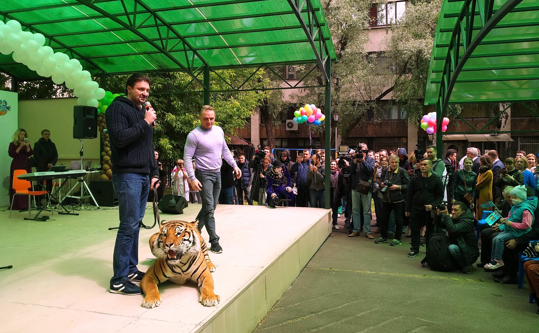 Праздник на сцене во внутреннем дворе, на детской площадке НИИ детской онкологии и гематологии начался с приветственных слов Ивана Стилиди и Дмитрия Морозова. Фонд «Открытое море» и компания Siemens вручили сертификат на новейший аппарат ультразвуковых исследований. Официальная часть была короткой, ведь полноценные хозяева этого праздника – дети. Громкими аплодисментами они приветствовали появление на сцене артистов Большого Московского цирка – клоунов, жонглёров, эквилибристов. А его руководители – братья Аскольд и Эдгард Запашные к всеобщему восторгу вышли на сцену с самым настоящим тигром. Для ребят и их родителей выступили мастера восточных единоборств, солисты оперной сцены, музыканты Московской Государственной Консерватории им.П.И.Чайковского, эстрадные исполнители Ирина Савитская, Владимир Лёвкин, Митя Фомин, Марк Тишман. Артисты приглашали ребят спеть и станцевать вместе с ними на сцене – так что там было по-настоящему тесно. Праздник завершился запуском в небо цветных шаров. По уже сложившейся традиции, выпуская шарик, каждый из ребят загадывал своё заветное желание.