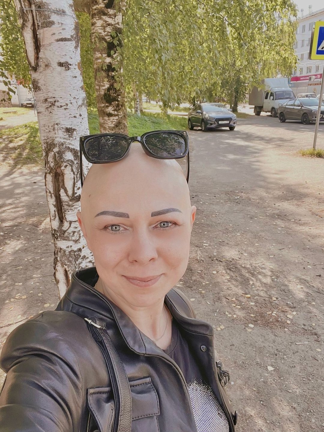 Потом началась «химия». На удивление, я ее прекрасно переносила. Все удивлялись, что я постоянно ела – сижу в палате, а вокруг расставлены салаты, печенюшки, чай, лимонад… Первый раз по-настоящему стрессанула во время «химии», когда начали выпадать волосы. Еще перед самым приездом в Москву остригла свою шевелюру под каре, а перед началом «химии» – уже «под мальчика». И вот, после третьего курса поехала в домой – поставила машину, пошла умываться и вот, провела рукой по волосам, а у меня вместо руки как у волка лапа! Полоска волос осталась на ладони… Но я решила не прятаться и не носить панамы и кепки. Каждая выбирает, как ей комфортнее – я выбрала быть лысой. Гуляла по Москве, по Вологде с лысой головой – провела даже в таком виде несколько фотосессий. Я приняла болезнь – да, сейчас я другая, но это по-прежнему я!
